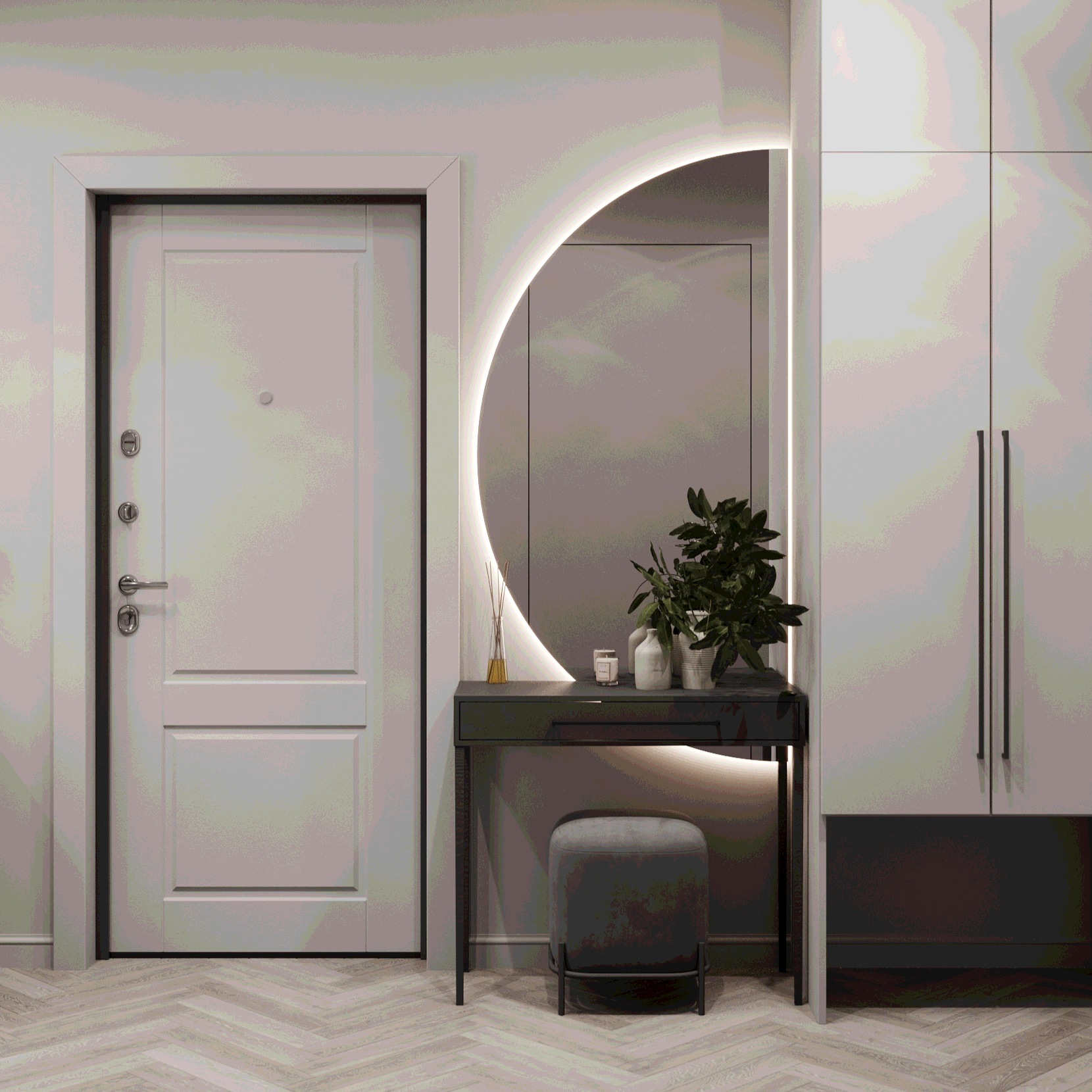 Переделка кухни, прихожей и санузлов в рамках 2-х комнатной квартиры для временного проживания молодой семьи с ребенком.